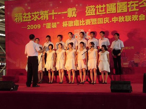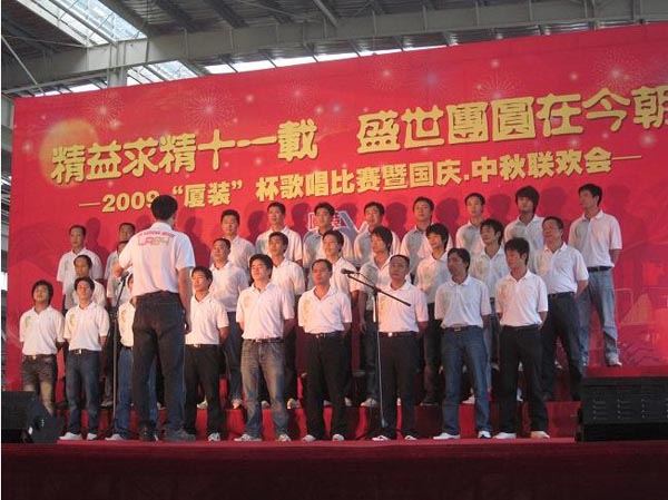 9月29日下午,2009年度“廈裝杯”歌唱比賽在廈裝公司總裝車間舉行。此次歌唱比賽以“精益求精十一載、盛世團(tuán)圓在今朝”為主題,賀祖國60周年華誕、喜迎中秋、慶祝廈裝成立11周年。公司及各部門從6月份開始籌備此次比賽,此次比賽分為集體組和個(gè)人組,集體組(合唱)以部門為單位,最終有6支隊(duì)進(jìn)入當(dāng)天的決賽,個(gè)人組通過先前的部門推薦及預(yù)賽選拔,最終有11人闖入決賽。