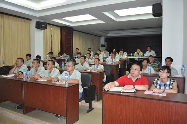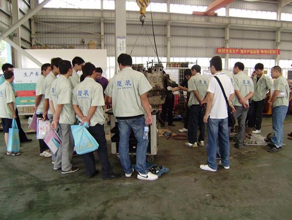 本次研討學(xué)習(xí)班共有來自全國各地區(qū)共計40名的一線服務(wù)人員參加。此次學(xué)習(xí)班,引起我司領(lǐng)導(dǎo)高度重視,不僅組織了相關(guān)部門領(lǐng)導(dǎo)系統(tǒng)授課:從新品介紹到各個機型的特點,從發(fā)動機故障判斷維修到管路液壓件原理介紹,從制動系統(tǒng)學(xué)習(xí)到油缸的拆裝;而且與相關(guān)配套廠商協(xié)商,組織全體學(xué)員到相應(yīng)的工廠系統(tǒng)學(xué)習(xí)驅(qū)動橋、變速箱、變矩器等主要零配件安裝維護課程!